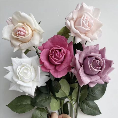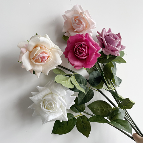 Hesper ดอกกุหลาบประดิษฐ์ขนาดใหญ่ดอกกุหลายดอกสัมผัสจริงดอกกุหลาบดอกเดียวก้านเดียวสำหรับตกแต่งบ้านงานแต่งงาน
