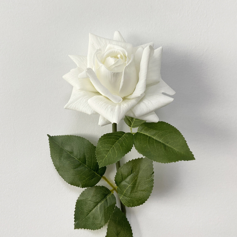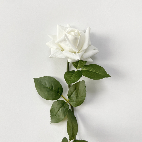 Hesper ก้านดอกไม้ประดิษฐ์ทำจากยางแท้สีขาวกุหลาบดอกเดี่ยวสำหรับงานแต่งงานของตกแต่งบ้าน