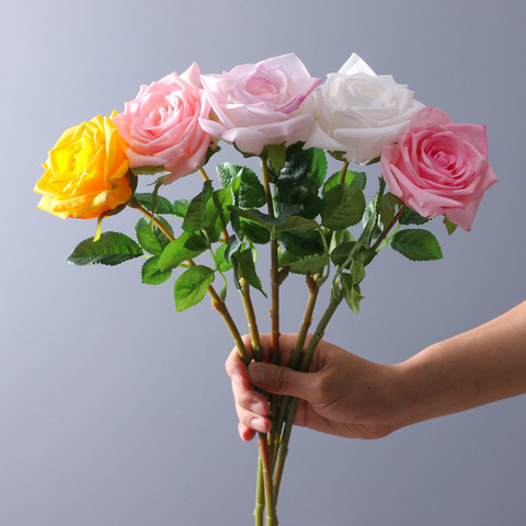 Hesper ดอกกุหลาบประดิษฐ์สีเหลืองสัมผัสเหมือนจริงสำหรับตกแต่งงานแต่งงานคุณภาพสูงทำจากผ้าไหมก้านเดี่ยวดอกกุหลาบสีขาวสัมผัสเหมือนจริง